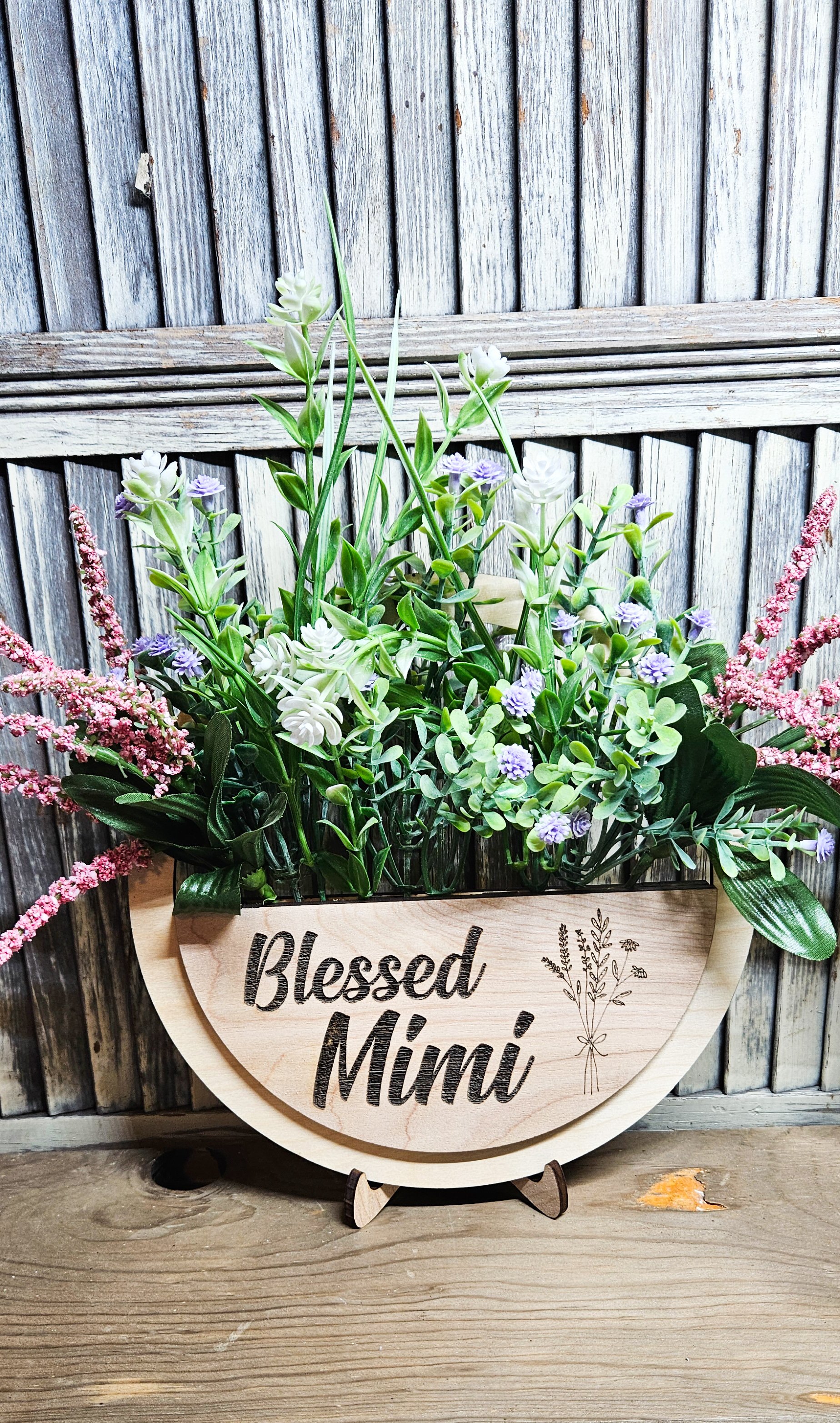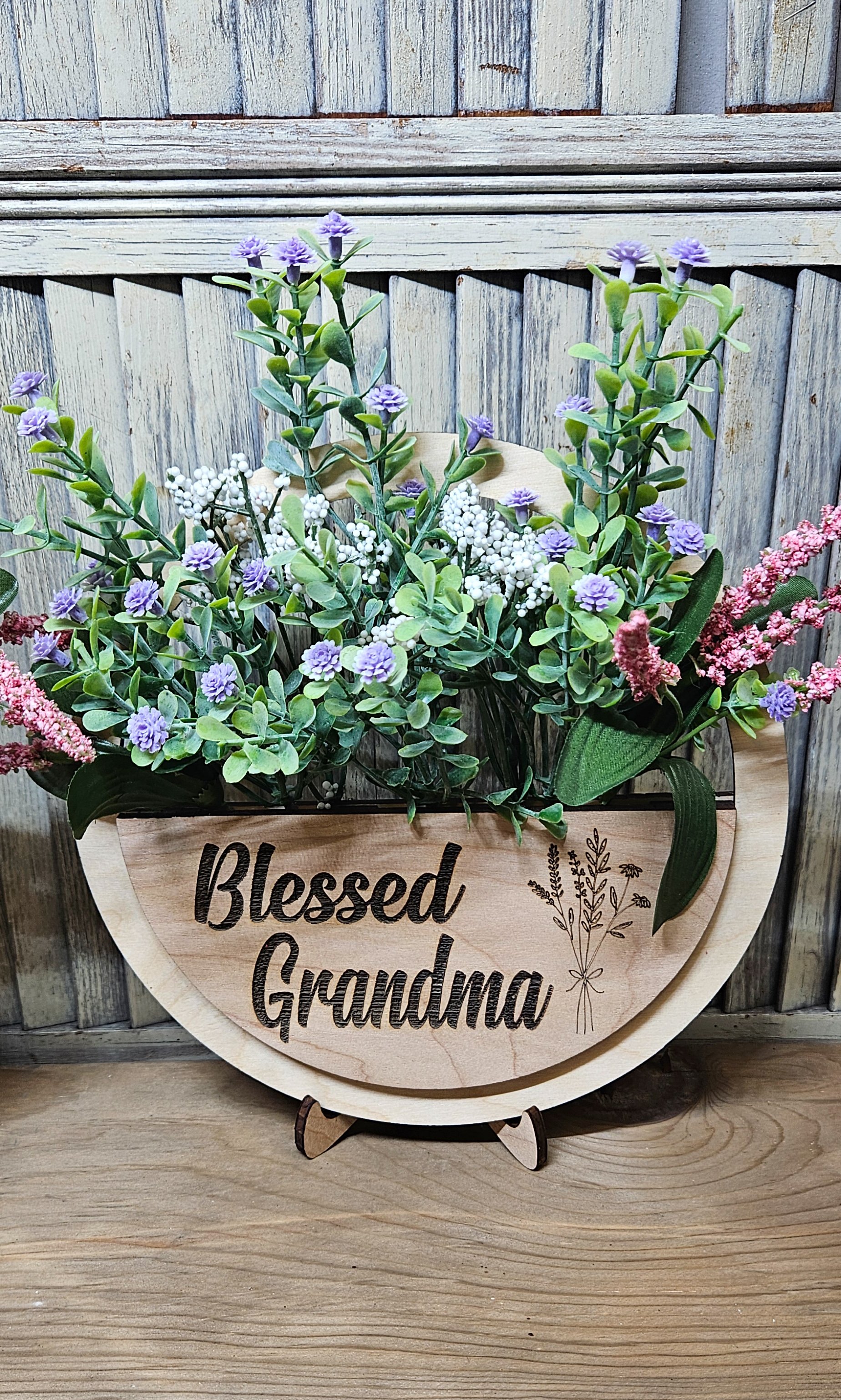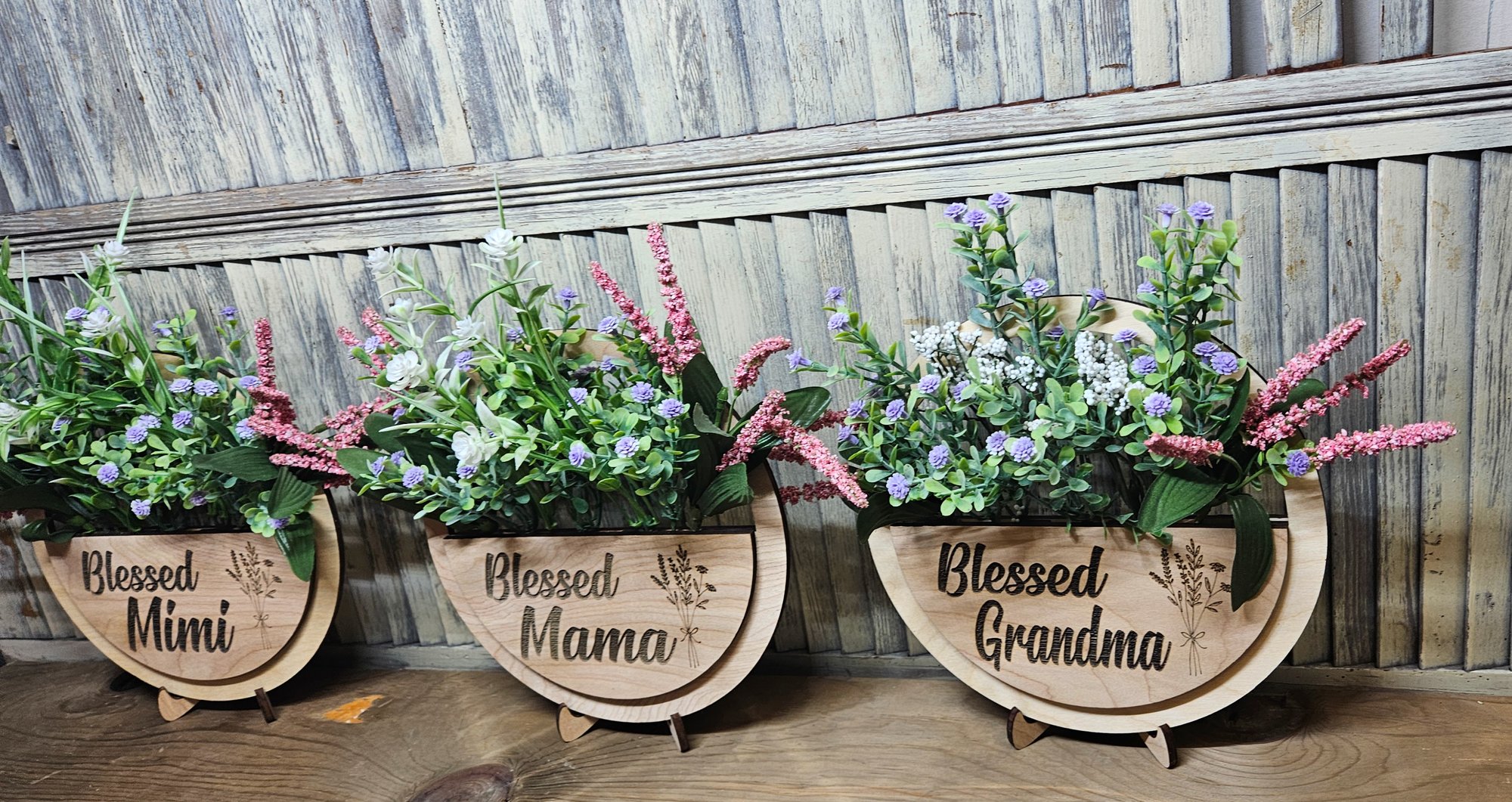 Laser cut/engraved flower plaque. Flowers are able to be taken out if you want to interchange flowers later. All plaques come with 1 stand.